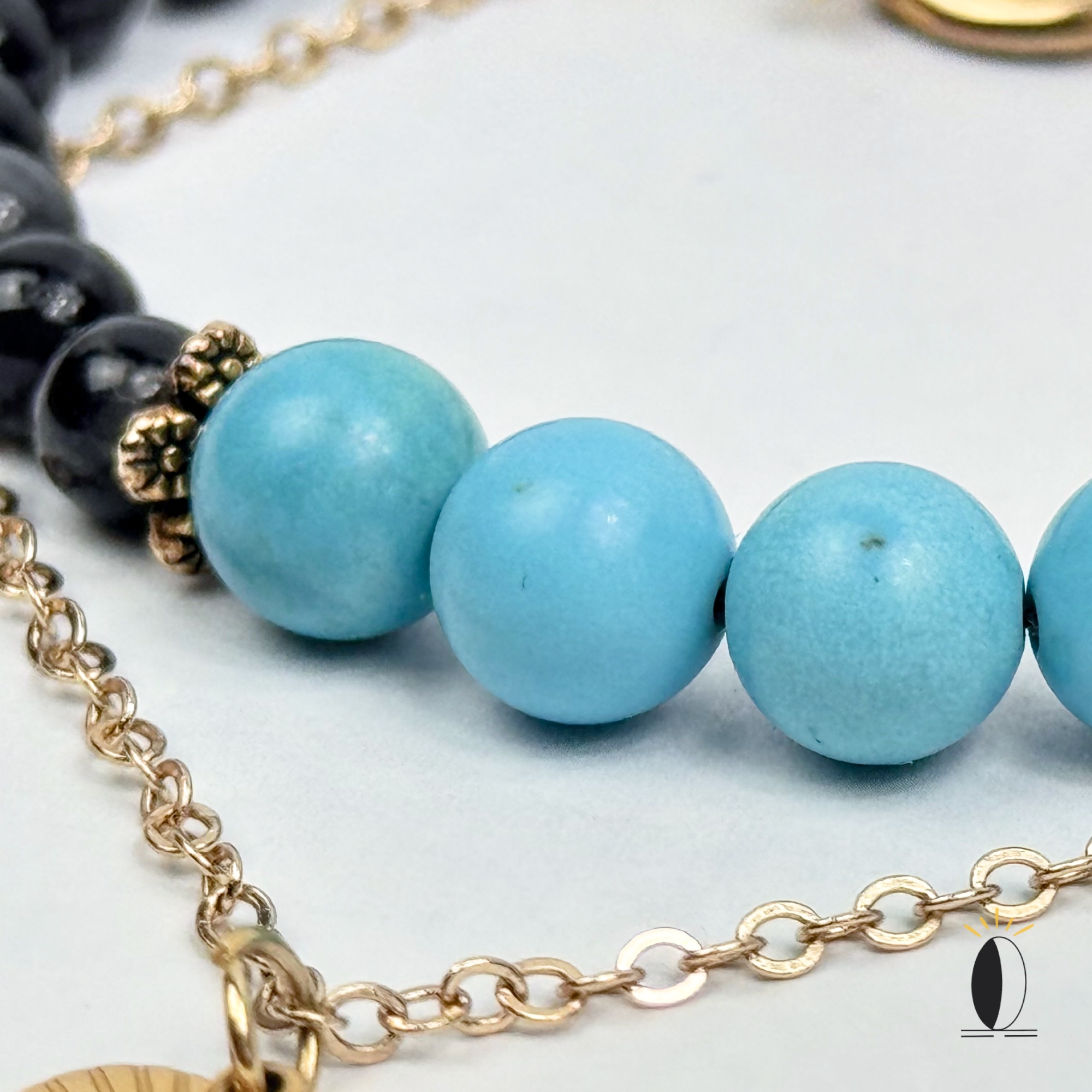 Turkus od wieków uważany jest za kamień ochronny, symbolizujący spokój, równowagę i wewnętrzną harmonię. Jego wyjątkowy odcień błękitu kojarzy się z czystością nieba i wodą, dlatego wiele osób traktuje go jako talizman przynoszący ukojenie oraz lekkość w codziennym życiu.