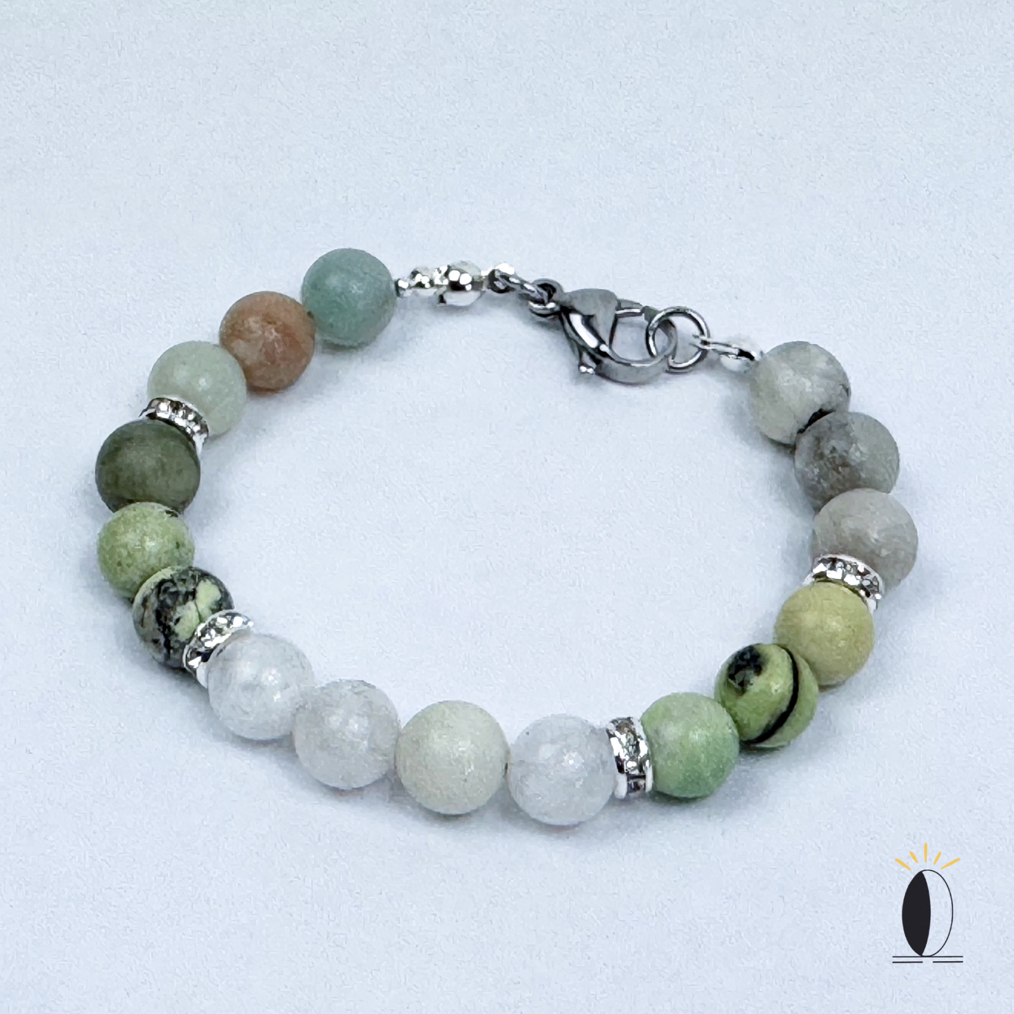 Bransoletka z kamieniami naturalnymi: księżycowy, chryzopraz, amazonit